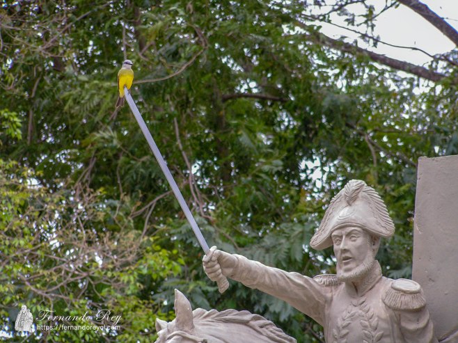 En este caso está en la punta de la espada de la estatua. También la saque en la plaza de Trinidad en Bolivia, en un monumento que conmemora una batalla contra los españoles en la guerra de la independencia boliviana.