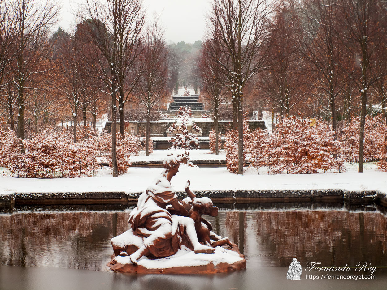 Siguiendo por tierras segovianas, esta foto pertenece a la Granja de San Ildefonso. Son los jardines del palacio real y cuando estábamos allí nos sorprendió una nevada que cubrió con su manto blanco todo el pueblo.