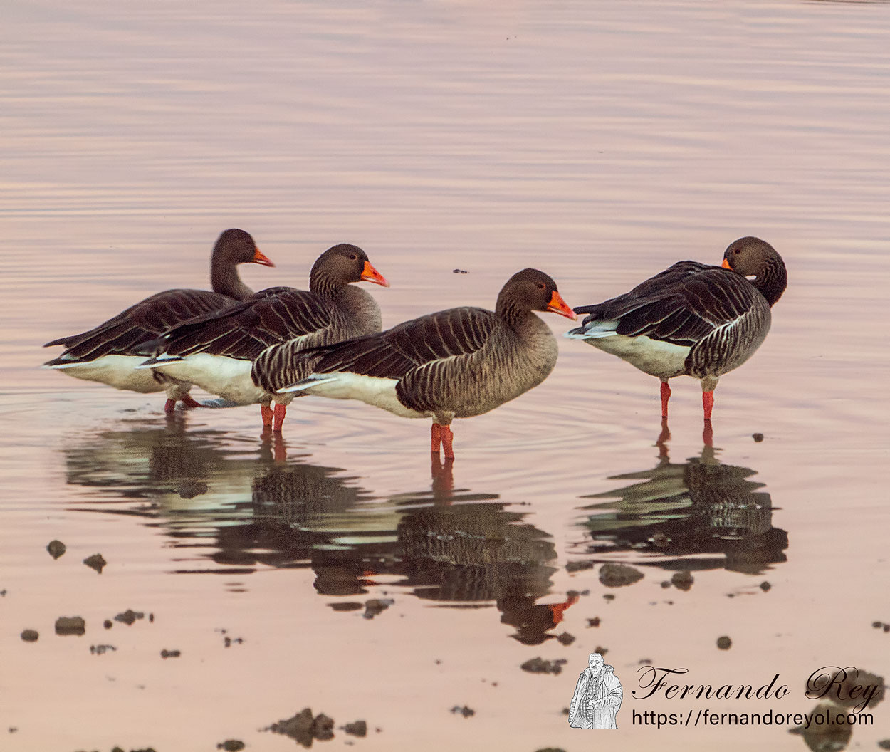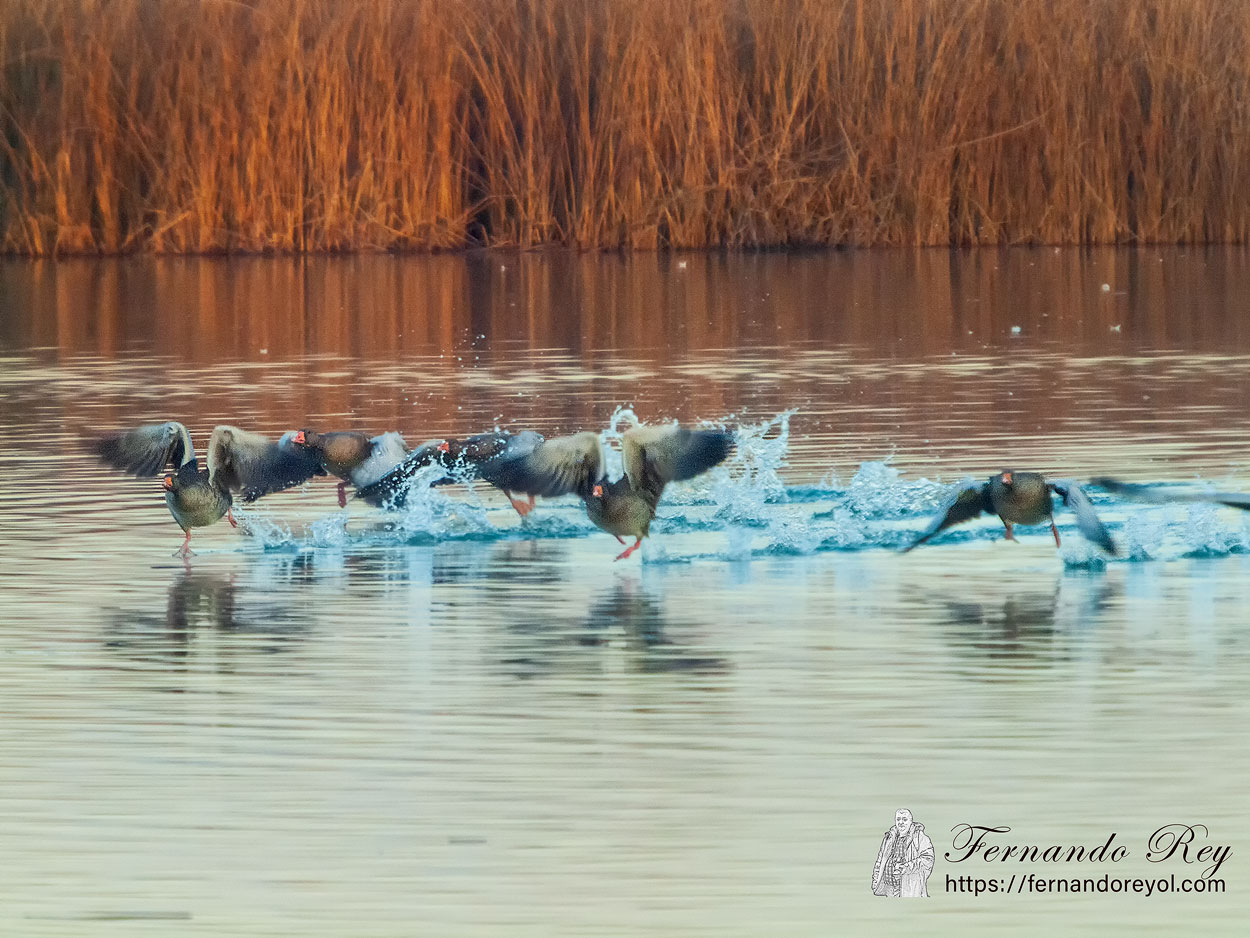 - Anser anser rubrirostris – cría en el noreste de Eurasia y pasa el inverno en el sur de Asia;