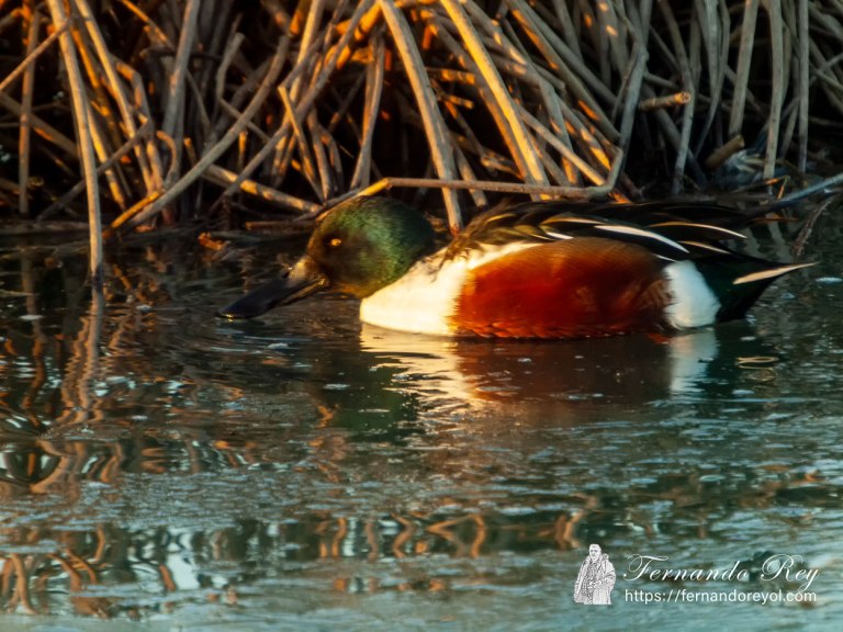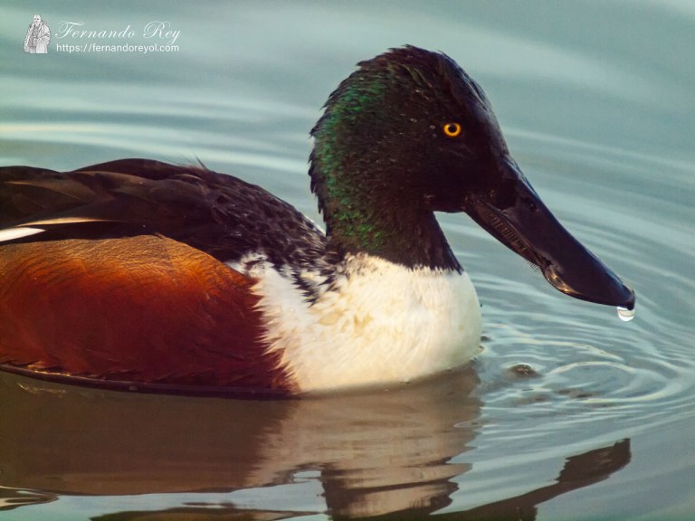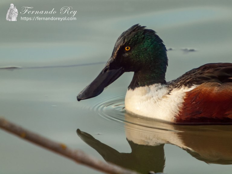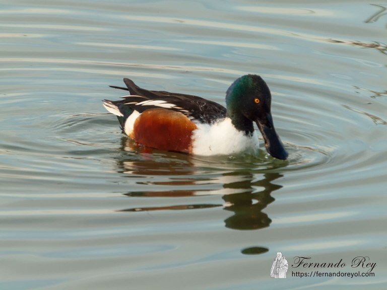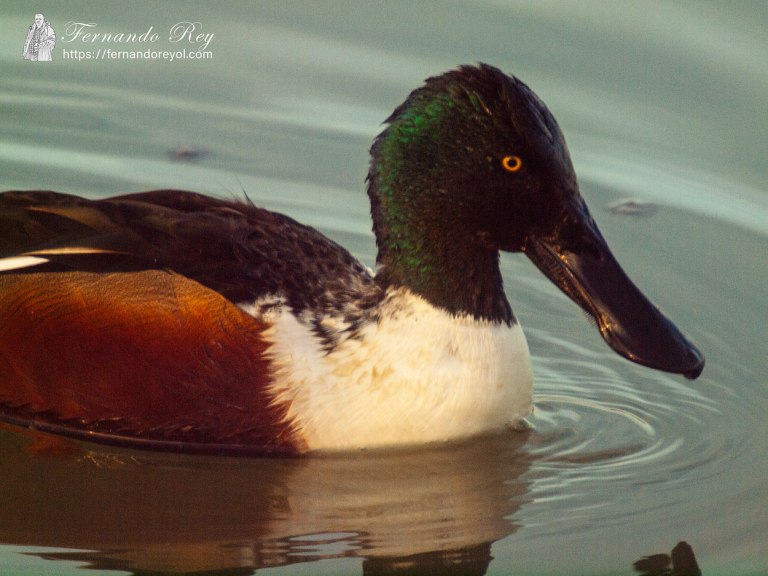 Es un pato pequeño, de unos 48 cm de largo, con una envergadura alar de 76 cm y un peso alrededor de 600 g. Esta especie es inconfundible en el hemisferio norte por su gran pico en forma de espátula o cucharón. El macho en plumaje reproductivo tiene la cabeza de color verde oscuro iridiscente, con el pico negro. Mientras que su pecho y la base de la cola son blancos, y los flancos y vientre de color castaño rojizo. Sus partes superiores son principalmente de color pardo oscuro, salvo las plumas secundarias solo visibles en vuelo, las coberteras que son de color azul claro y las rémiges que forman un espejuelo verde iridiscente enmarcado por una lista blanca. Algunos machos tienen una media luna blanca a los lados del rostro en otoño. El plumaje de los machos fuera de la época de reproducción (eclipse) se torna parduzco, más parecido al de las hembras.