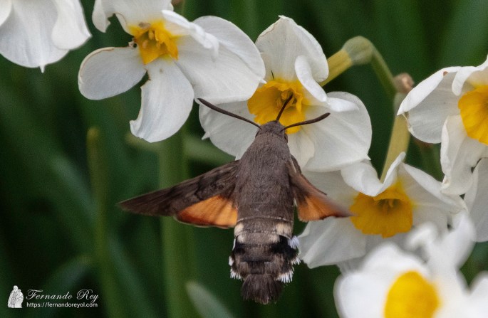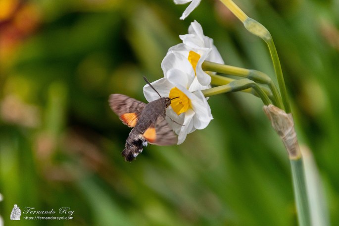 La esfinge colibrí (Macroglossum stellatarum) es una especie de lepidópteroditrisio de la familia Sphingidae. Vive en el sur de Europa, incluyendo la Península Ibérica, norte de África y centro de Asia, India e Indochina. Recibe el nombre por su vuelo y forma de alimentación, que se asemejan a los del colibrí. La envergadura de las alas es de 40-45 mm. Las delanteras son pardas con líneas y puntos negros y las traseras anaranjadas. El abdomen es negro y blanco al lateral, con sedas con forma de cola de un ave. Su huevo es de forma ovoide, de color entre amarillo y verdoso, y suele eclosionar entre el séptimo y el octavo día después de la puesta. La larva es cilíndrica, de color amarillo y más tarde verde claro. La crisálida mide de 30 a 35 mm.