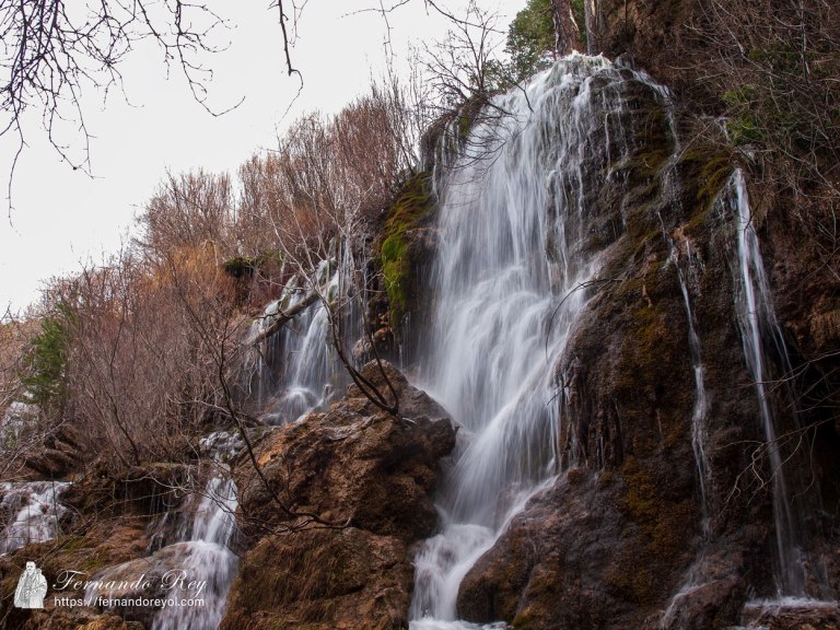 El nacimiento del río Cuervo fue declarado Monumento Natural en 1999 y ocupa una superficie de 1709 hectáreas. En este lugar, el agua (cuando lleva) brota de un manantial travertínico y escurre por enormes estalactitas de roca calcárea (toba) recubierta de musgo, formando unas largas chorreras que se congelan en invierno, ofreciendo una bella estampa fotografiada miles de veces cada año. En el nacimiento se pueden observar grutas tras las cascadas y simas en sus alrededores y es relativamente frecuente que se produzcan, de manera natural, derrumbamientos de sus barreras tobáceas.