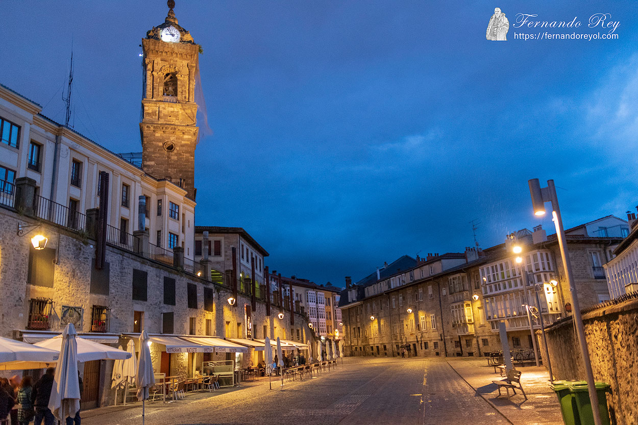 Desde el punto de vista urbanístico, Vitoria es una ciudad de tamaño medio, cuyo trazado se adapta a las tradiciones de cada momento histórico. El casco medieval se desarrolla en forma de almendra en torno a la colina fundacional, que por su situación privilegiada como única elevación en la llanada alavesa, se convirtió en un bastión defensivo codiciado por los reinos de Navarra y Castilla durante los siglos XI y XII. El recinto amurallado es anterior a esta guerra entre navarros y castellanos, y se debe a la labor emprendida por el Conde de Álava, hijo bastardo del rey Ramiro I de Aragón, en el siglo xi, para la defensa de la aldea. Los muros defensivos de la vieja Vitoria fueron construidos entre el año 1050 y el 1100. Debido a esa primera función defensiva, sus calles estrechas y sombrías rodean el óvalo originario, en compactas hileras de viviendas paralelas entre sí y con respecto a las murallas medievales (de las cuales sólo se conservan algunos tramos y portones). Entre los años 1854 y 1856 se produjo un acontecimiento que cambió la fisonomía de la ciudad. Una epidemia de cólera fue el pretexto para derribar los portales, que eran casas fuertes, que daban acceso a las calles Correría (casa fuerte de los Nanclares), Zapatería (casa fuerte de los Soto) y Herrería (casa fuerte de los Abendaño) y que servía para proteger a cada gremio barrial. A la entrada de la actual Plaza de la Virgen Blanca, se encontraba el portal de Santa Clara, que estaba unido por la muralla al convento de San Antonio. En el siglo XIX, y ante la evidencia de que la ciudad se estaba quedando pequeña.