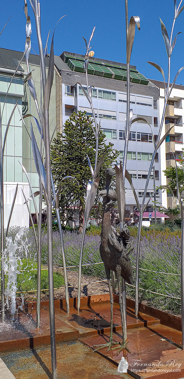 La obra se compone de un conjunto de grandes juncos (nueve elementos) que rondan los seis metros de altura, entre los que se han colocado las figuras animales de una garza de bronce, un cangrejo autóctono y una rana bermeja.